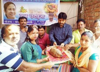 তৃণমূলের উদ্যোগে ছটপুজোয় বস্ত্র ও পুজো সামগ্রী প্রদান