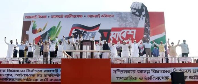 ডেট লাইন কলকাতা: ভোটের দিন ঘোষণার দুদিনের মাথায় ব্রিগেডে সভা করে আসন্ন ২০২১ এর বিধানসভা নির্বাচনকে বিশেষ মাত্রা দিল বাম কংগ্রেসের জোট। এই জোটে নতুন সংযোজন হল আব্বাস সিদ্দিকীর ইন্ডিয়ান সেক্যুলার ফ্রন্ট। ব্রিগেডে এদিনের বিশাল সমাবেশে বাম ও কংগ্রেসের শীর্ষ নেতারা থাকলেও মধ্যমনি হয়ে উঠে ছিলেন ভাইজান অর্থাৎ আব্বাস সিদ্দিকী। তিনি তার ঝাঁঝালো ভাষণে তৃণমূল ও বিজেপিকে উৎখাতের ডাক দেন। তৃণমূলকে বিজেপির বি টিম বলেও তিনি তীব্র কটাক্ষ করেন। কংগ্রেসের অধীর চৌধুরী,বাম ফ্রন্টের সূর্যকান্ত মিশ্র,মহম্মদ সেলিম, সীতারাম ইয়েচুরি সহ অন্য নেতারা আসন্ন বিধানসভা নির্বাচনে বিজেপি ও তৃণমূলকে উৎখাত করে তৃতীয় বিকল্প হিসেবে বাম কংগ্রেস জোটকে সরকারে আনার আহ্বান জানান। এদিন ব্রিগেডের বিশাল সমাবেশ দেখে অভিভূত প্রবীণ সিপিএম নেতা বিমান বসু বলেছেন এটা ঐতিহাসিক সমাবেশ। তবে জোটের এই বিশাল সমাবেশ কিছুটা হলেও একবার তাল কাটল যখন অধীর চৌধুরী ভাষণ দিচ্ছিলেন আর আব্বাস সিদ্দিকী মঞ্চে উঠতেই বাম নেতৃত্ব তাকে মঞ্চে আহ্বান জানাতে ব্যস্ত হয়ে উঠলেন।