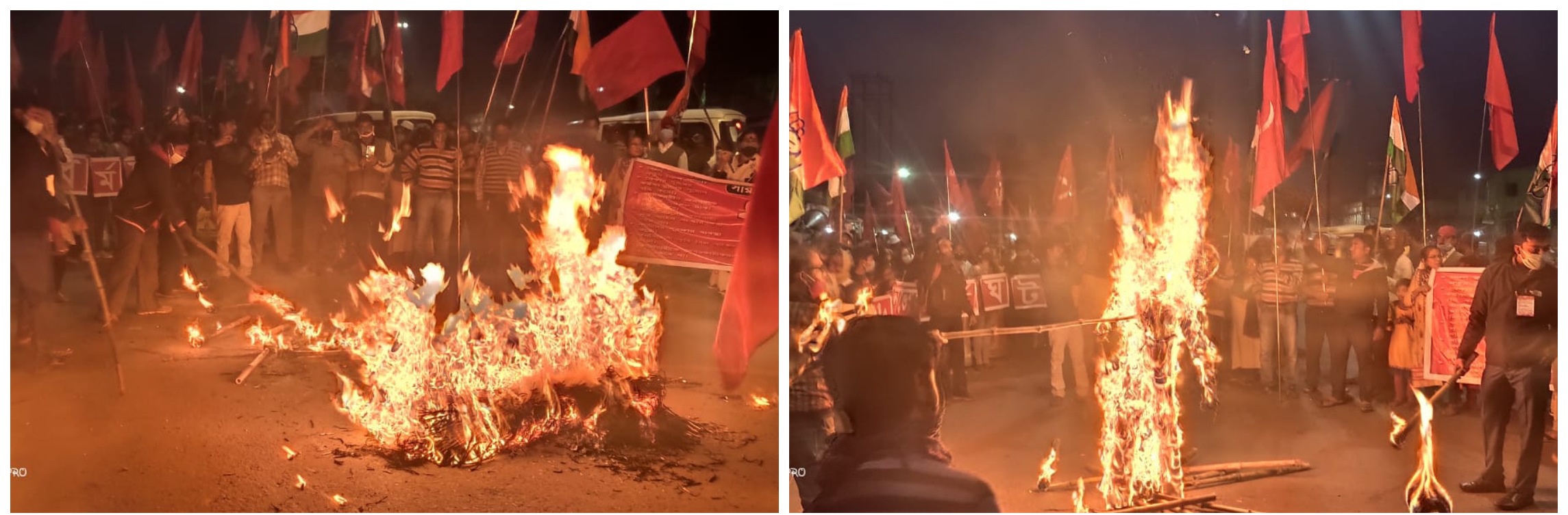 ডেটলাইন দুর্গাপুরঃ কেন্দ্রীয় সরকারের শ্রমিক-কৃষক বিরোধী এবং জনবিরোধী নীতির প্রতিরোধে ২৬ নভেম্বর দেশজুড়ে সাধারণ ধর্মঘটের ডাক দিয়েছে বামপন্থী দশটি কেন্দ্রীয় ট্রেড ইউনিয়ন। এই ধর্মঘটকে সমর্থন করেছে কংগ্রেসের শ্রমিক সংগঠন আইএনটিইউসি। ট্রেড ইউনিয়নগুলির জাতীয় কনভেনশন থেকে ৭দফা দাবিতে এই ধর্মঘটের সিদ্ধান্ত নেওয়া হয়েছে। ধর্মঘটের সপক্ষে ট্রেড ইউনিয়নগুলি জানিয়েছে, মোদী সরকার একের পর এক শ্রমিক-কৃষক ও জনবিরোধী নীতি গ্রহণ করে চলেছে। গণতান্ত্রিক অধিকার কেড়ে নেওয়া হচ্ছে। মহামারীর সময়ে মানুষের জীবন-জীবিকা বিপন্ন। তাঁদের আয় নেই। এই সময়ে বিপন্ন মানুষের পাশে না দাঁড়িয়ে দমনপীড়নের নীতি নিয়ে চলছে মোদী সরকার। এই আক্রমণ প্রতিহত করতে ধর্মঘটের পথে যেতে বাধ্য হচ্ছেন শ্রমিকরা। ইতিমধ্যে গত অক্টোবর থেকে এই ধর্মঘটের সমর্থনে জেলায় জেলায় প্রচার করা হয়েছে। এদিন দুর্গাপুর স্টেশন বাজার থেকে বাঁকুড়া মোড় পর্যন্ত এই ধর্মঘটের সমর্থনে মশাল মিছিল করে সিটু ও আইএনটিইউসি। কৃষি বিল বাতিলসহ একাধিক জনস্বার্থ বিরোধী নীতির প্রতিবাদে এই মিছিলে অংশ নেন সিপিএম নেতা পঙ্কজ রায় সরকার, কংগ্রেস নেতা স্বপন ব্যানার্জীসহ অন্যান্য নেতা ও বামপন্থী ছাত্র ও যুব সদস্যরা। মিছিল শেষে বাঁকুড়া মোড়ে প্রধানমন্ত্রী নরেন্দ্র মোদির কুশ পুতুল দাহ করা হয়।