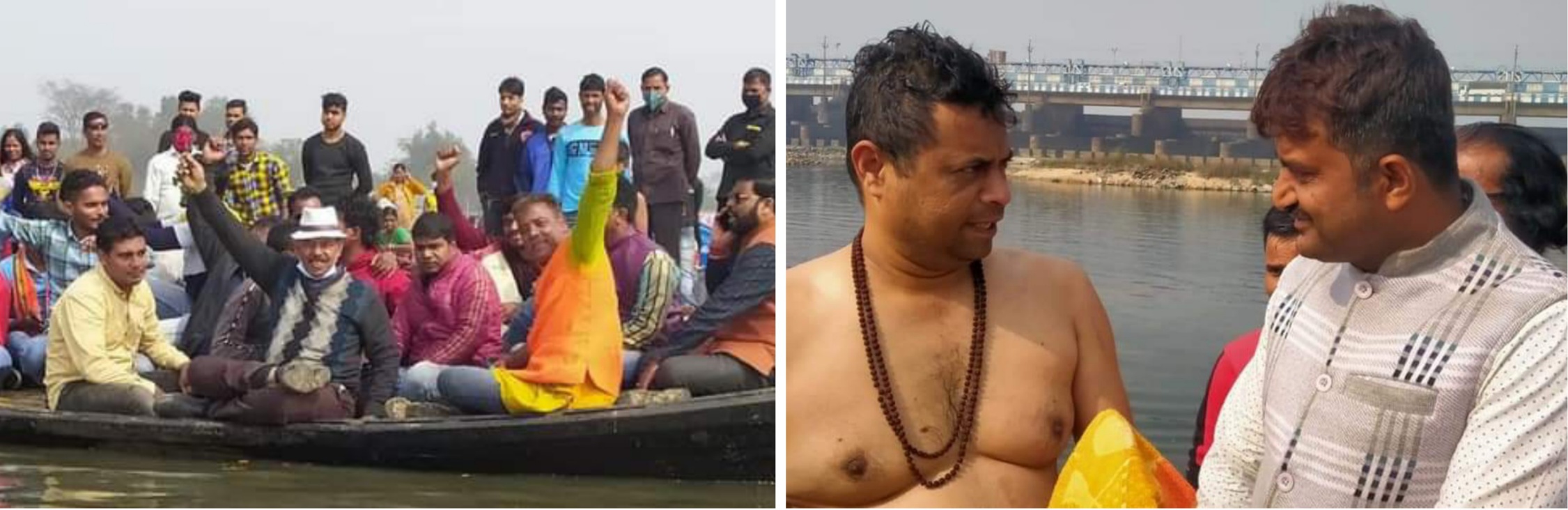 ডেট লাইন দুর্গাপুর: মকর সংক্রান্তি আর জনসংযোগ একই সঙ্গে সারলেন বিজেপির যুব সংগঠনের নেতা তথা বিষ্ণুপুরের সাংসদ সৌমিত্র খা। বৃহস্পতিবার তিনি দুর্গাপুরের দামোদরের জলে মকর সংক্রান্তির পূণ্য স্নান করেন। এখানে আগত পুণ্যার্থীদের সঙ্গে তিনি সৌজন্য বিনিময় ও করেন। এখানে তিনি কিছুক্ষন নৌকা বিহার ও করেন। তারপর দামোদরের জলে ঝাঁপ দিয়ে স্নান করেন। পরে চায়ে পে চর্চায় অংশ নিয়ে বলেন, ভারতবর্ষ যেন করোনা মুক্ত হয় এবং বাংলা যাতে সোনার বাংলা হয় সেই প্রার্থনা করলাম। একই সঙ্গে তিনি দামোদর ব্যারেজের রক্ষণাবেক্ষণের উপর জোর দেন। তার সঙ্গে ছিলেন বিজেপির শ্রমিক সংগঠন বি এম এসের জেলা নেতা অসীম প্রামাণিক, যুব নেতা চন্দ্রশেখর ব্যানার্জি, জেলা বিজেপির সভাপতি লক্ষ্মণ ঘড়ুই।