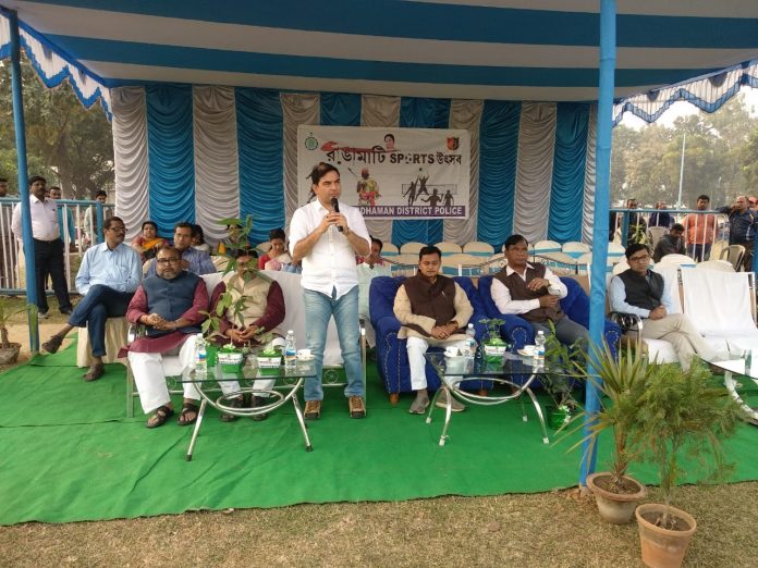 ডেটলাইন পূর্ব বর্ধমানঃ কিছুদিন আগেই দুর্গাপুরে প্রশাসনিক সভার পাশাপাশি বর্ধমানের কালনাতেও সরকারী সভা করেন মুখ্যমন্ত্রী মমতা বন্দ্যোপাধ্যায়। সেখানে তিনি আদিবাসীদের সামাজিক উন্নয়নের উপর বিশেষ জোর দেন। পুলিশের উদ্দেশ্যে তিনি বলেছিলেন,তারা যেন আদিবাসীদের সঙ্গে যোগাযোগ রেখে তাদের খোঁজখবর নেন। এছাড়াও মুখ্যমন্ত্রী আদিবাসীদের নিয়ে উংসবের কথাও বলেছিলেন। মুখ্যমন্ত্রীর সেই ঘোষনার কয়েকদিনের মধ্যেই আদিবাসীদের নিয়ে রাঙামাটি স্পোর্টসের আয়োজন করল পূর্ব বর্ধমান জেলা পুলিশ। সপ্তাহব্যাপী এই রাঙামাটি স্পোর্টসে মোট পাঁচটি ইভেন্টকে রাখা হয়েছে। জেলার মোট ১৮ টি থানার পুরুষদের ৬৫০ টি ফুটবল দল অংশগ্রহন করেছে। এছাড়াও ১৮টি মহিলা ফুটবল দল, ৭২টি পুরুষ ভলিবল, ১৮ টি মহিলা ভলিবল এবং ১৫টি বাউল শিল্পীদের দল প্রতিযোগিতায় অংশগ্রহণ করেছে। প্রতিযোগিতা থেকে সেরা দলকে বেছে নেওয়া হবে এবং তাদের পুরস্কৃত করা হবে। সমগ্র জেলা জুড়ে সাধারণ মানুষের সঙ্গে পুলিশের সম্পর্ককে আরও নিবিড় করার লক্ষ্যেই এই উদ্যোগ বলে জানান পূর্ব বর্ধমানের পুলিশ সুপার ভাস্কর মুখার্জী। বর্ধমান পুলিশ লাইন মাঠে আয়োজিত এই রাঙামাটি স্পোর্টস অনুষ্ঠানের শুভ সূচনা করেন মন্ত্রী স্বপন দেবনাথ।